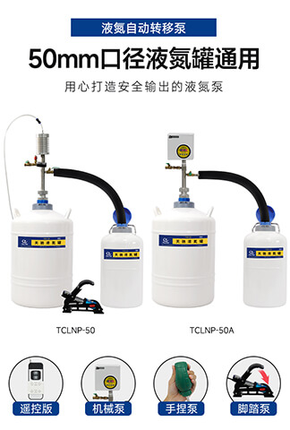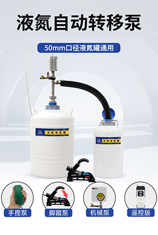 天馳液氮自動轉移泵分腳踏(TCLNP-50)和機械(TCLNP-50A)兩種,不銹鋼泵體,輕巧易操作,美觀耐用,適用于50mm口徑液氮罐,安全輸出液氮。